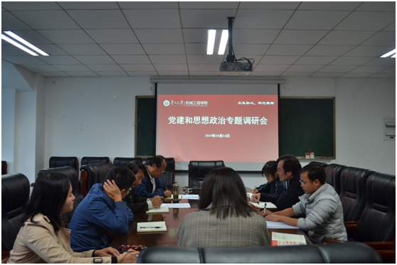 機(jī)械工程學(xué)院網(wǎng)訊(報(bào)道鄒醒佳|攝影楊誠(chéng) 儂玉昌) 為認(rèn)真落實(shí)中央、省委和貴州大學(xué)黨委的決策部署,扎實(shí)開展學(xué)院“不忘初心、牢記使命”題教育工作,根據(jù)機(jī)械工程學(xué)院黨委班子成員開展主題教育調(diào)研方案,10月14日,機(jī)械工程學(xué)院黨委書記安明剛在機(jī)械樓522會(huì)議室召開黨建和思想政治專題調(diào)研會(huì),圍繞“堅(jiān)定理想信念,牢記初心使命”主題,全面了解學(xué)院黨建和思想政治工作情況。我院黨委副書記代祥社、副院長(zhǎng)楊勤及各支部書記、學(xué)生黨員代表、教職工黨員代表參加了會(huì)議。