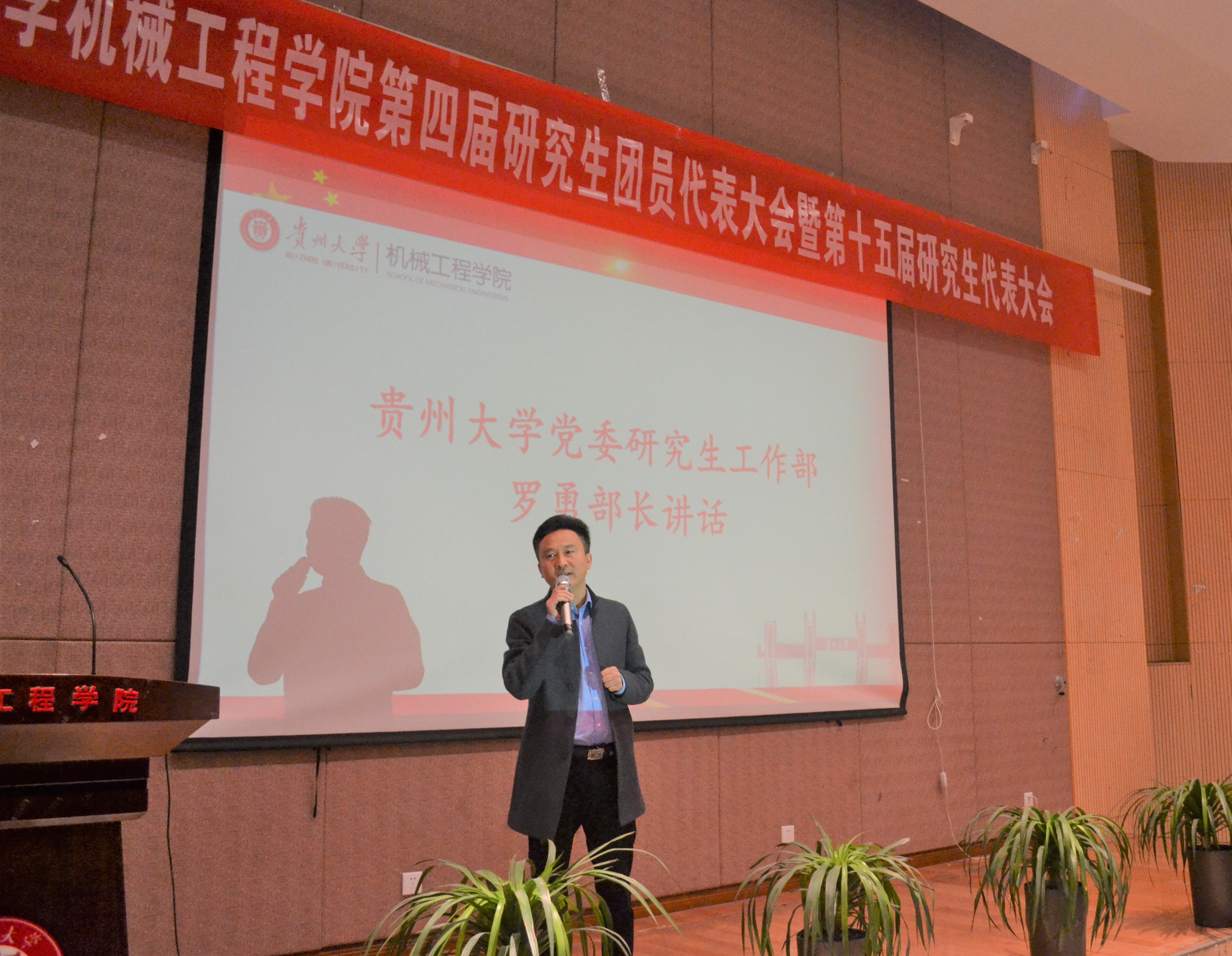 2019年11月6日,貴州大學(xué)機(jī)械工程學(xué)院第四次研究生團(tuán)員代表大會(huì)暨第十五次研究生代表大會(huì)在貴州大學(xué)機(jī)械工程學(xué)院圓形報(bào)告廳順利召開(kāi),貴州大學(xué)研究生工作部羅勇部長(zhǎng)、貴州大學(xué)機(jī)械工程學(xué)院黨委書(shū)記安明剛、機(jī)械工程學(xué)院院長(zhǎng)李少波老師、優(yōu)秀導(dǎo)師代表、研究生科老師出席本次會(huì)議,同時(shí)受邀參加本次大會(huì)的還有貴州大學(xué)各群團(tuán)組織負(fù)責(zé)人。