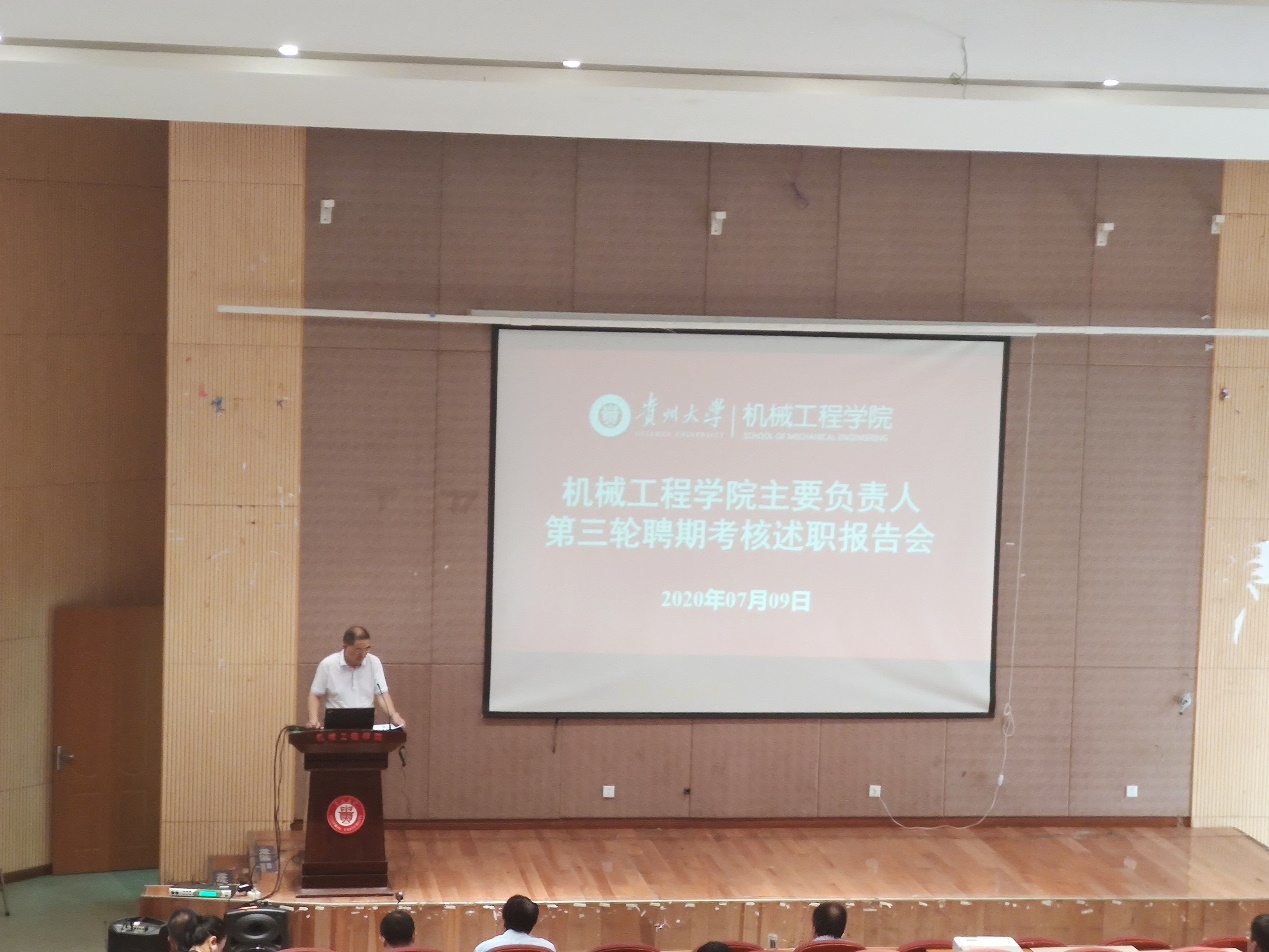 2020年7月9日上午,機(jī)械工程學(xué)院在圓形報(bào)告廳舉辦了學(xué)院主要負(fù)責(zé)人第三輪聘期述職報(bào)告會(huì)。教育部駐貴州大學(xué)黨建聯(lián)絡(luò)員、貴州民族大學(xué)原黨委副書記唐建榮同志蒞臨指導(dǎo)報(bào)告會(huì)。參加報(bào)告會(huì)的學(xué)院領(lǐng)導(dǎo)有安明剛書記、李少波院長,代祥社副書記、楊勤副院長、何鋒副院長、趙津副院長,以及機(jī)械工程學(xué)院全體教職工。報(bào)告會(huì)由代祥社副書記主持。