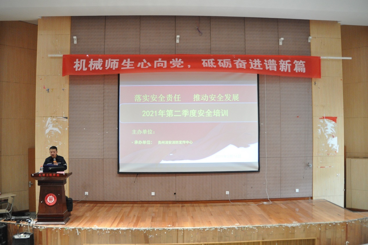 機(jī)械工程網(wǎng)站訊(記者楊誠(chéng)|攝影 楊誠(chéng))5月14日上午,機(jī)械工程學(xué)院開(kāi)展消防安全專題培訓(xùn)會(huì)。學(xué)院邀請(qǐng)了貴州消防安全宣傳中心車(chē)剛同志到場(chǎng)開(kāi)展消防安全知識(shí)講座。機(jī)械工程學(xué)院黨委書(shū)記安明剛、副書(shū)記廖燁、副院長(zhǎng)楊勤出席會(huì)議,機(jī)械工程學(xué)院全體教職工參加培訓(xùn)。