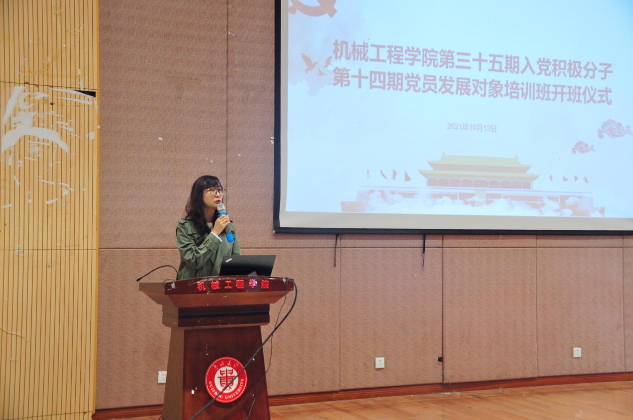 機械工程網(wǎng)站訊(記者 胡佳|攝影 胡佳)2021年10月13日,貴州大學機械工程學院在機械樓報告廳舉行了第三十五期入黨積極分子及第十四期黨員發(fā)展對象培訓班開班儀式,機械工程學院黨委書記安明剛、副書記廖燁出席此次儀式,全體入黨積極分子和發(fā)展對象參加此次儀式,此次儀式由趙麗芳老師主持。