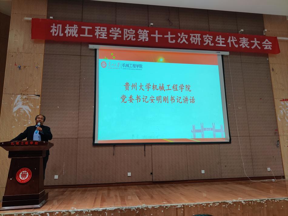 最后,貴州大學(xué)機(jī)械工程學(xué)院黨委書記安明剛向本次大會的勝利召開表示祝賀。他指出機(jī)械工程學(xué)院研究生會一直以來都是一支充滿青年活力、踏實勤懇,是有著優(yōu)秀作風(fēng)、優(yōu)秀傳統(tǒng)的優(yōu)秀團(tuán)體。研究生會組織了大量富有特色的活動,他希望學(xué)院的每一位同學(xué)都能做一名德、智、體、美、勞全面發(fā)展,熱愛祖國、奉獻(xiàn)社會的優(yōu)秀青年,希望學(xué)院研究生會在同學(xué)們可以起到表率作用,能夠向“肩負(fù)歷史使命,堅定前進(jìn)信心,立大志、明大德、成大才、擔(dān)大任,努力成為堪當(dāng)民族復(fù)興重任的時代新人”的方向而不懈努力,做新時代優(yōu)秀青年。