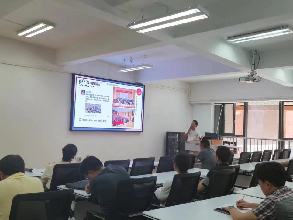 董蔚然從思想引導(dǎo)、學(xué)業(yè)指導(dǎo)、心理輔導(dǎo)、事務(wù)管理四個維度,介紹班主任工作職責(zé)以及指導(dǎo)如何做好班主任工作。學(xué)生科負責(zé)人王嘉斌為班主任們講解省級、校級優(yōu)秀班集體建設(shè)要求。隨后,校級“最美班主任”獲得者肖華強老師分享了個人工作及班級建設(shè)經(jīng)驗。
