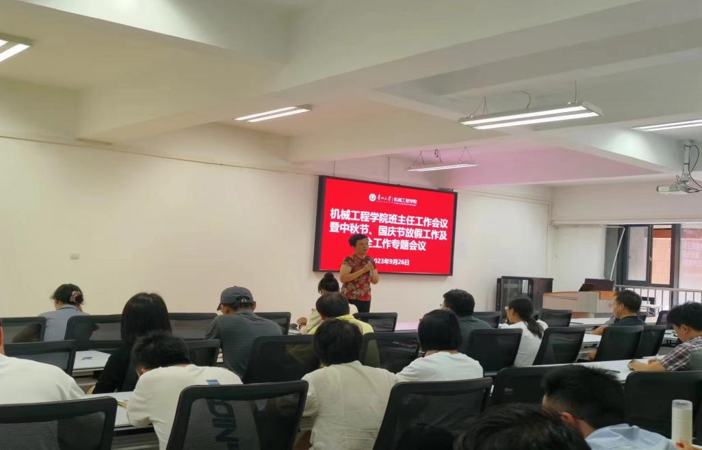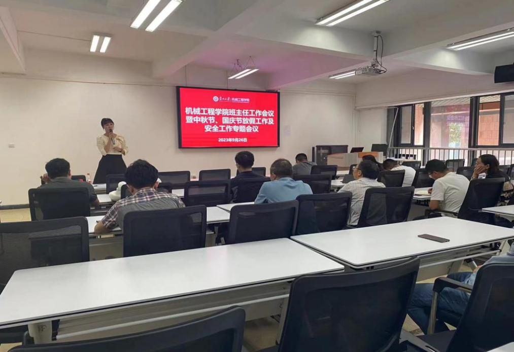 為切實加強班主任隊伍建設(shè),做好中秋節(jié)、國慶節(jié)學(xué)生安全教育管理工作,2023年9月26日,機械工程學(xué)院在327召開班主任工作會議暨中秋、國慶節(jié)前安全工作專題會議。學(xué)院正處級組織員董蔚然、黨委副書記廖燁出席,全體班主任老師以及學(xué)生科輔導(dǎo)員共計50余人參加會議。
