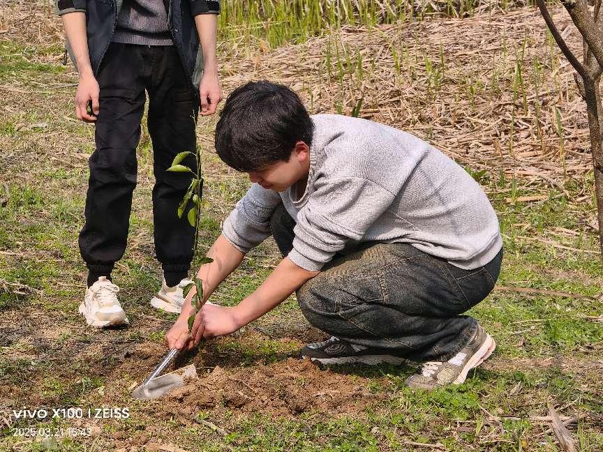 “植”此青綠,共“樹”未來。同學(xué)們協(xié)同配合,栽苗、培土、澆水,每一道工序都一絲不茍。濕潤的泥香混著青草氣息漫溢開來,種樹如育人,根系要深、枝干要直,就像精密零件組成完整機(jī)器,每棵樹都是生態(tài)系統(tǒng)的“關(guān)鍵部件”,這次活動讓同學(xué)們體會到專業(yè)學(xué)習(xí)與生態(tài)保護(hù)的深層聯(lián)系。