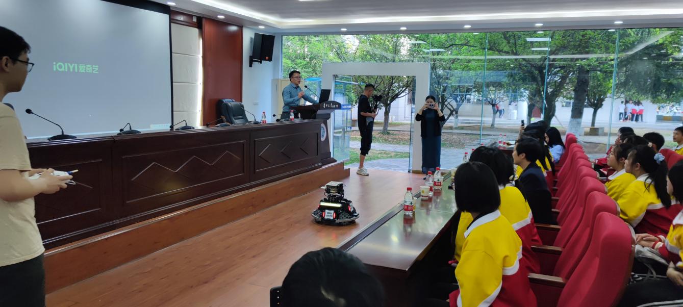 為充分發(fā)揮學(xué)者影響力,普及推動(dòng)科學(xué)知識(shí),我院副院長(zhǎng)唐正強(qiáng)教授于4月17日走進(jìn)貴州大學(xué)附屬中學(xué)為師生開(kāi)展主題為“智能時(shí)代,智創(chuàng)未來(lái)”的科普講座。他通過(guò)生動(dòng)的視頻演示和PPT配合講解,深入淺出地介紹了人工智能、智能制造等前沿科技的發(fā)展趨勢(shì)及其對(duì)未來(lái)的影響和我院教師在智能技術(shù)領(lǐng)域的探索與實(shí)踐,并向同學(xué)們展示了我院學(xué)生制作的機(jī)器人,激發(fā)學(xué)生關(guān)注科技熱情。