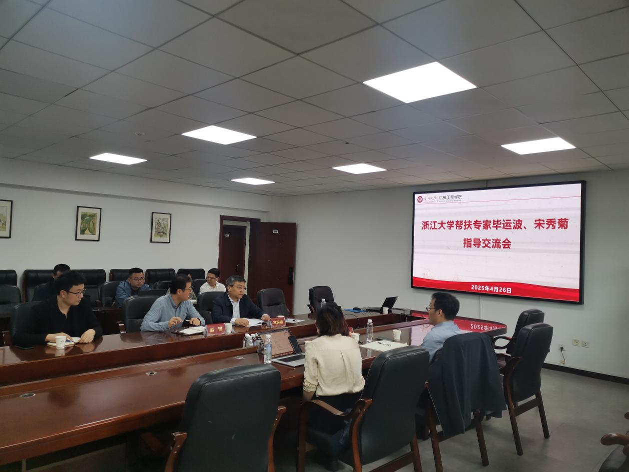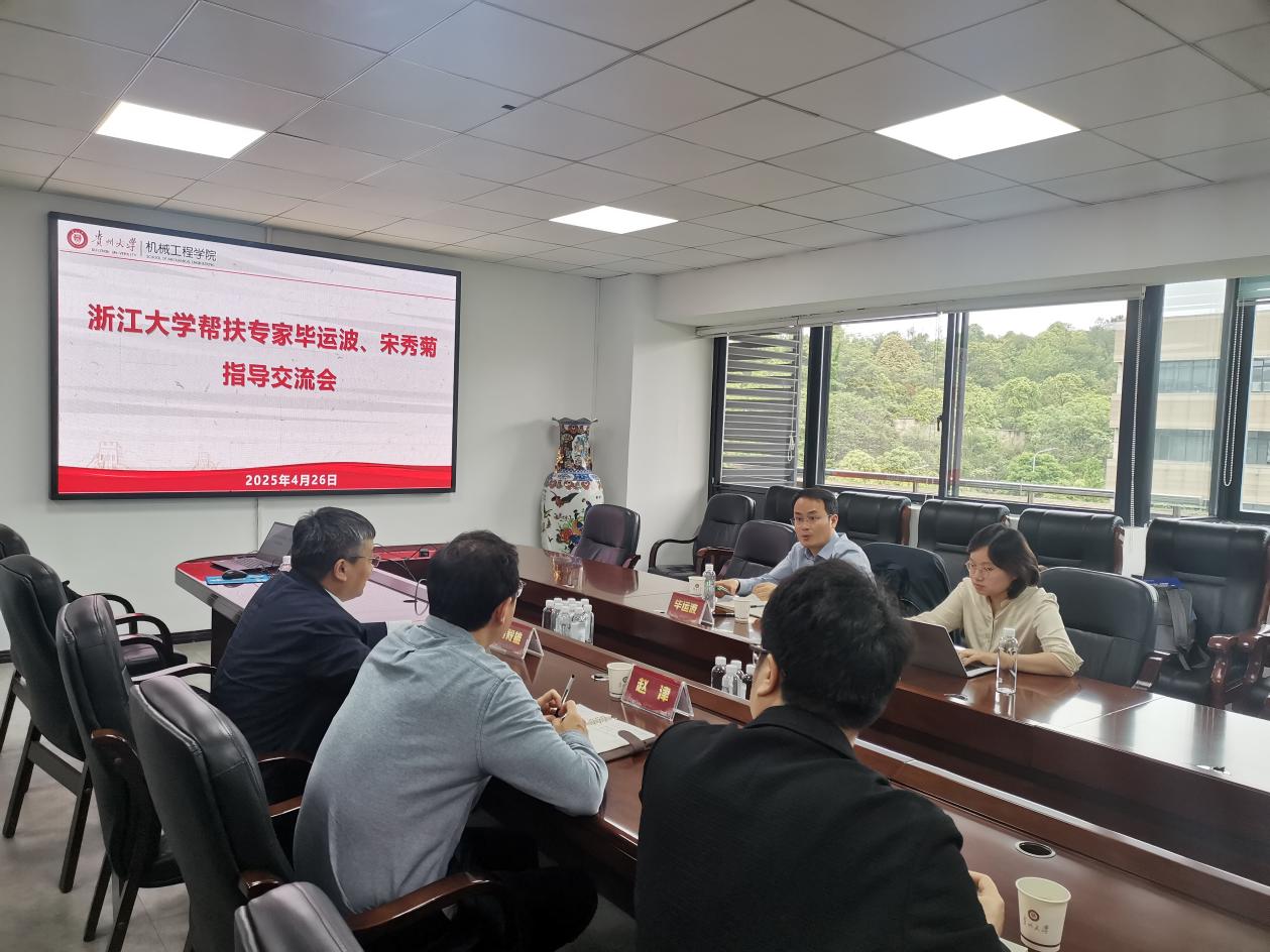 為深入貫徹落實(shí)省委省政府關(guān)于深化東西部協(xié)作和新時(shí)代高校對(duì)口幫扶工作的重要指示精神,2025年4月26日下午,浙江大學(xué)機(jī)械工程學(xué)院對(duì)口幫扶專家畢運(yùn)波教授、宋秀菊研究員一行赴貴州大學(xué)機(jī)械工程學(xué)院開(kāi)展指導(dǎo)交流?;顒?dòng)由貴州大學(xué)機(jī)械工程學(xué)院黨委書(shū)記趙津主持,浙江大學(xué)幫扶專家組組長(zhǎng)、國(guó)家級(jí)人才稱號(hào)獲得者馮毅雄及學(xué)院青年教師代表吳家柱、汪???、杜昊、漆令飛、陳躍威等10余人參與座談交流。