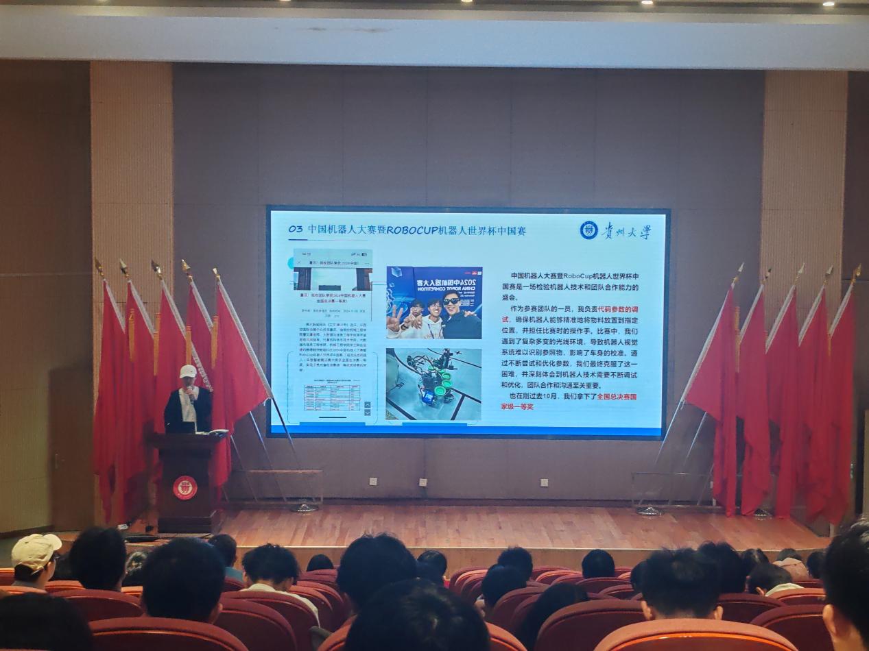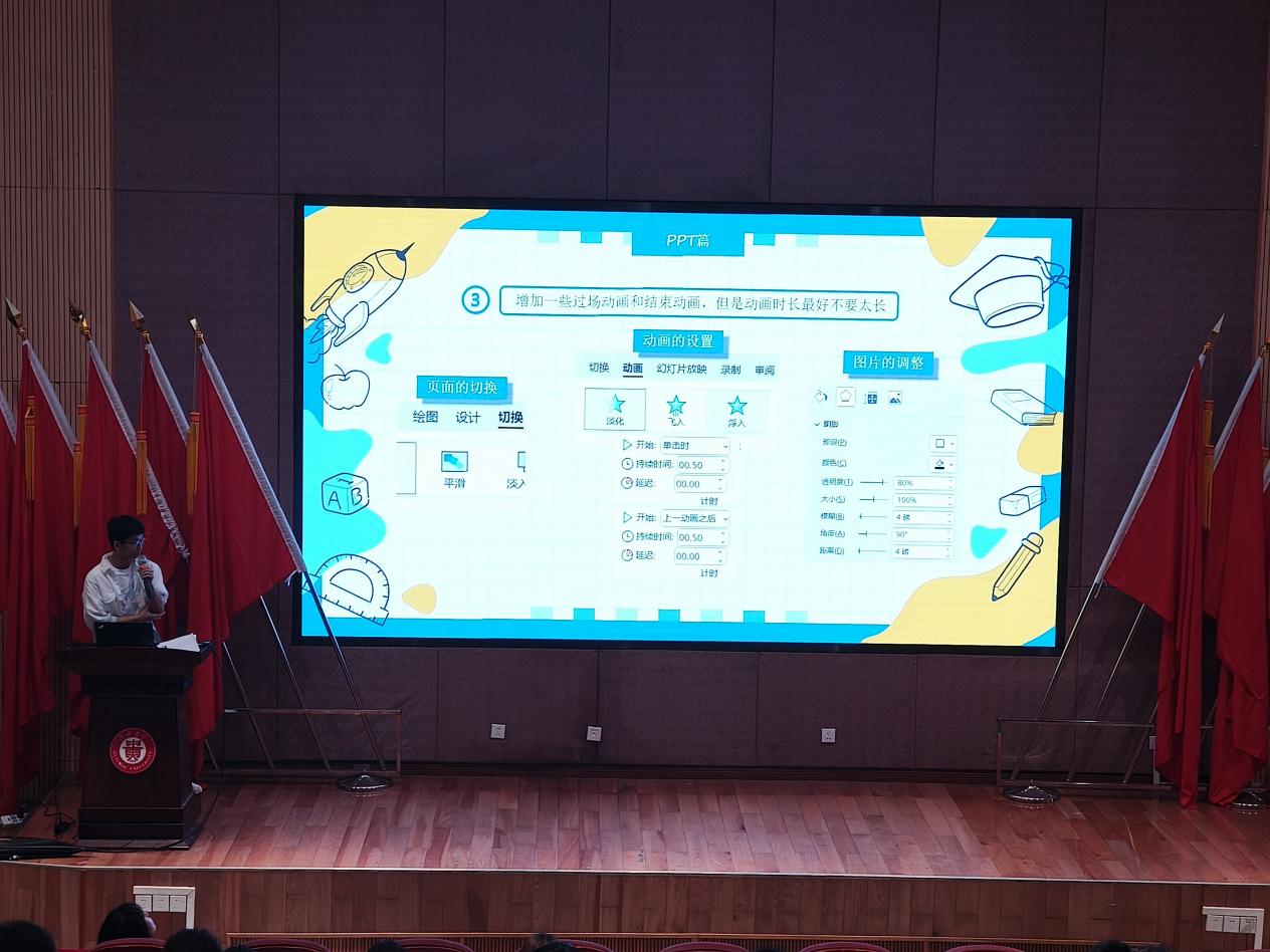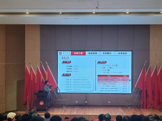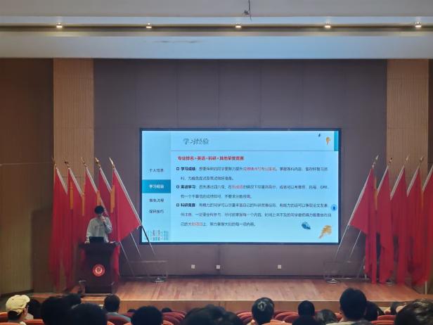 榜樣領(lǐng)航,傳遞奮進力量。經(jīng)驗分享環(huán)節(jié),唐雍、俞天鑫、杜立杰、王占坤、米小紅5名國家獎學(xué)金獲得者依次上臺,圍繞學(xué)業(yè)規(guī)劃、科研創(chuàng)新、競賽經(jīng)驗、時間管理、社會實踐等方面分享有關(guān)經(jīng)驗與感悟。他們講述了自身在專業(yè)學(xué)習(xí)中攻克難題的經(jīng)歷,鼓勵同學(xué)們主動探索、勇于嘗試,現(xiàn)場同學(xué)認真聆聽,紛紛表示收獲頗豐。