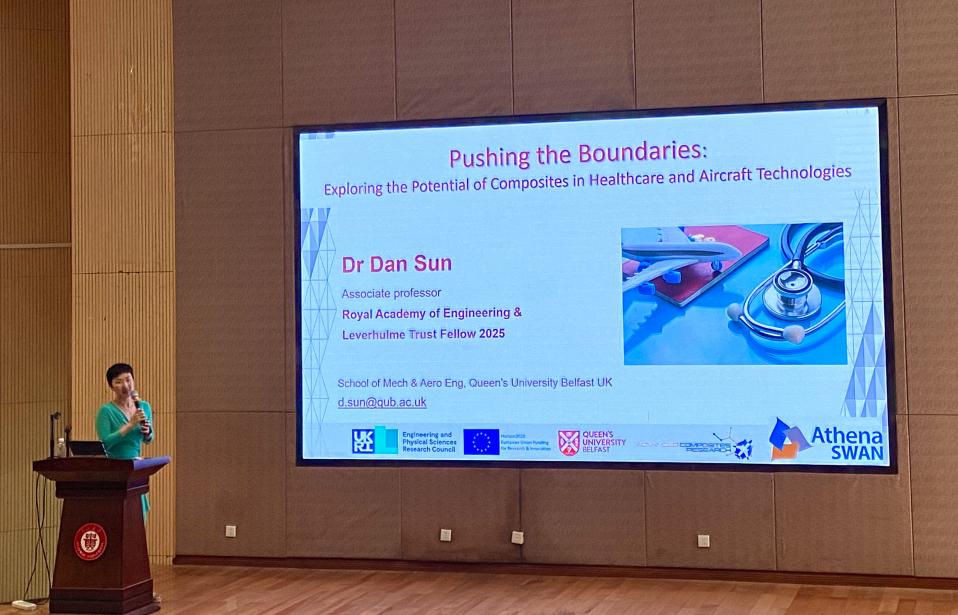 孫丹副教授聚焦先進復(fù)合材料的前沿應(yīng)用。在醫(yī)療方面,她開發(fā)的智能復(fù)合植入材料不僅能替代受損骨骼,更能實現(xiàn)精準(zhǔn)藥物釋放和可控殺菌,為復(fù)雜骨病治療提供全新解決方案;在航空領(lǐng)域,其團隊針對新一代可回收飛機材料,創(chuàng)新性地優(yōu)化了加工工藝,顯著提升制造效率與環(huán)保性能。兩項研究均體現(xiàn)了復(fù)合材料技術(shù)對產(chǎn)業(yè)升級和人類健康的積極推動作用。