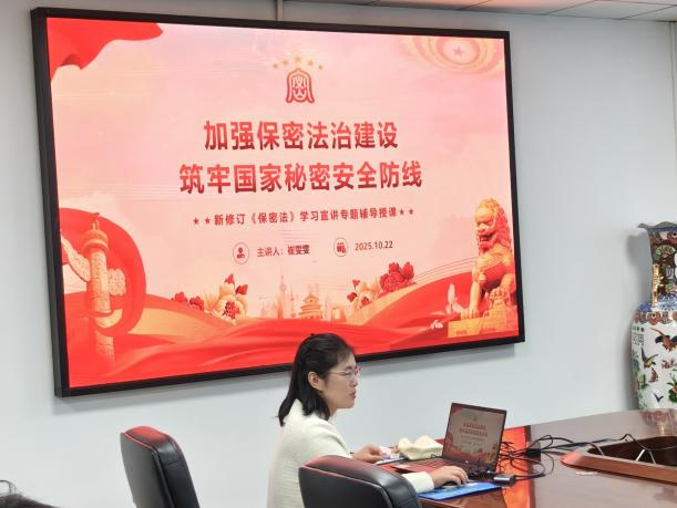 最后,由先進(jìn)技術(shù)研究院崔雯雯老師為同學(xué)們進(jìn)行了專(zhuān)題輔導(dǎo)授課。崔老師以“加強(qiáng)保密法治建設(shè),筑牢國(guó)家秘密安全防線(xiàn)”為主題,圍繞新修訂《保密法》的核心要義和重點(diǎn)內(nèi)容進(jìn)行了系統(tǒng)宣講和深入解讀。她結(jié)合高??蒲泄ぷ鞯奶攸c(diǎn),詳細(xì)講解了在日常科研活動(dòng)、涉密人員管理、載體保管、信息公開(kāi)等過(guò)程中可能存在的泄密風(fēng)險(xiǎn)點(diǎn)及防范措施,內(nèi)容詳實(shí),案例生動(dòng),使同學(xué)們對(duì)保密法律法規(guī)有了更清晰的理解,對(duì)如何在實(shí)際科研工作中履行保密職責(zé)有了更明確的認(rèn)識(shí)。